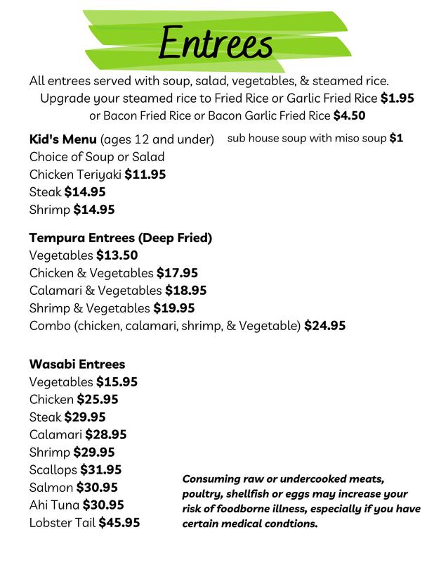© 2006 - 2023 Wasabi Japanese Steak House. All rights reserved. | 2745 Elk Grove Blvd. Ste. 300, Elk Grove, CA, 95758 | (916) 683-8188